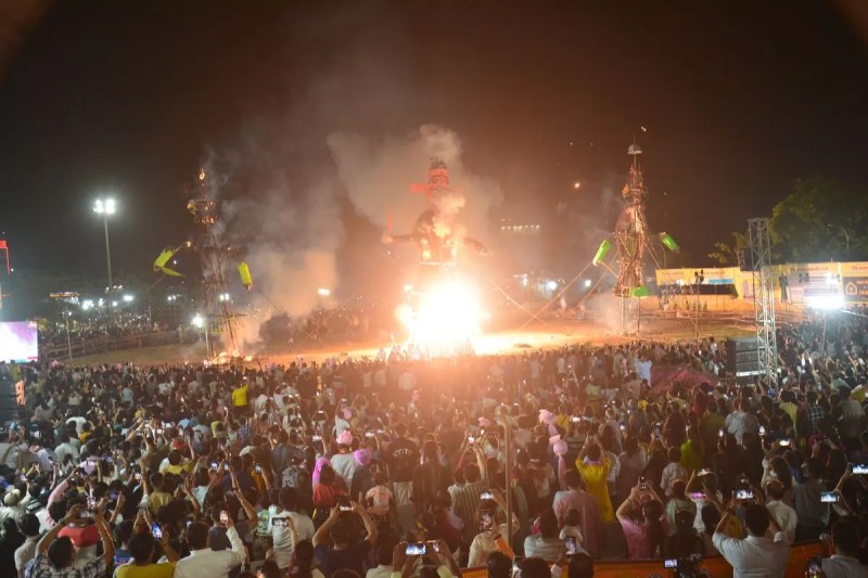 अलवर. दशहरा पर्व गुरुवार धूमधाम से मनाया गया। शहर के दशहरा मैदान पर भगवान श्रीराम ने अग्निबाण चलाकर 70 फीट ऊंचे रावण के पुतले का दहन किया। दशहरा मेले के लिए पुरूषार्थी समिति जिला अलवर ने विशेष व्यवस्थाएं की थीं। पूरे दशहरा मैदान को रंग-बिरंगी लाइटों से आकर्षक ढंग से सजाया गया था। विवेकानंद चौक स्थित पुरूषार्थी धर्मशाला से दशहरा मैदान तक झांकियों के साथ भगवान श्रीराम की भव्य शोभायात्रा निकाली गई। इसमें भगवान श्रीराम, लक्ष्मण सहित कई देवी-देवताओं की झांकियां शामिल थीं। शोभायात्रा को और भव्य बनाने के लिए बैंड, दिल्ली की मशहूर पूंगी पार्टी, पंजाबी ढोल आदि बुलाए गए। इसी के साथ ड्रोन से पुष्प वर्षा मुख्य आकर्षक रही। रास्ते में व्यापारिक व विभिन्न सामाजिक संगठनों की ओर से शोभायात्रा का स्वागत किया गया। शोभायात्रा विभिन्न मार्गाे से होते हुए देर शाम दशहरा मैदान पहुंची। जहां रावण, कुंभकरण और मेघनाद के पुतलों का दहन किया गया। जैस ही भगवान राम ने रावण को मारा सारा वातावरण जय श्रीराम के जयकारों से गूंज उठा। मुख्य अतिथि केंद्रीय मंत्री भूपेंद्र यादव रहे। उनके साथ वन राज्य मंत्री संजय शर्मा, रामगढ़ विधायक सुखवंत सिंह, पूर्व विधायक ज्ञानदेव आहुजा, भाजपा जिलाध्यक्ष अशोक गुप्ता भी मौजूद रहे। पुरूषार्थी समाज के जिला अध्यक्ष कुलदीप कालरा ने बताया कि दशहरा मैदान में गाजियाबाद के कलाकारो की ओर से भव्य आतिशबाजी की गई थी। समारोह के दौरान भारी भीड़ रही। लोग परिसर के अंदर व बाहर खड़े हुए थे। समिति की ओर से समारोह का लाइव प्रसारण करने के लिए यूटयूब चैनल पर लाइव प्रसारण किया गया। दशहरा मैदान में चार एलईडी स्क्रीन भी लगाई गई थी। इसके साथ ही ड्रोन से की गई पुष्प वर्षा भी आकर्षण का केंद्र रही।