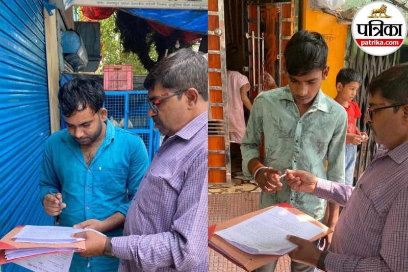कब्जेदारों को नोटिस देती टीम (फोटो सोर्स: पत्रिका)