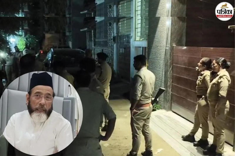 मौलाना तौकीर और फाइका एंक्लेव में मौजूद पुलिस (फोटो सोर्स: पत्रिका)