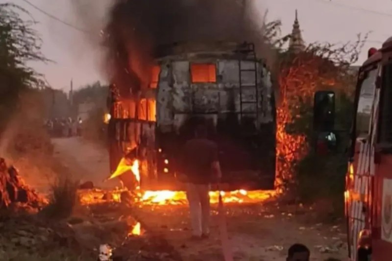 धौलपुर। राजाखेड़ा क्षेत्र में गत शनिवार को गांव समोना में हाई टेंशन लाइन की चपेट में जली प्राइवेट बस मामले में नया खुलासा हुआ है। इस पर लगी रजिस्ट्रेशन नंबर प्लेट के नीचे दूसरा नंबर भी अंकित मिला है, जिससे पुलिस भी भौंचक्की रह गई। दोनों नंबर प्लेट अलग-अलग राज्यों की है। एक मध्यप्रदेश और दूसरी उत्तरप्रदेश की है।