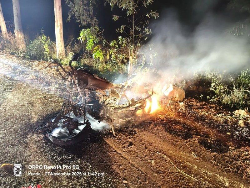 मालवाहक से टकराकर से बाइक में लगी आग, हाइवे में हुआ दर्दनाक हादसा