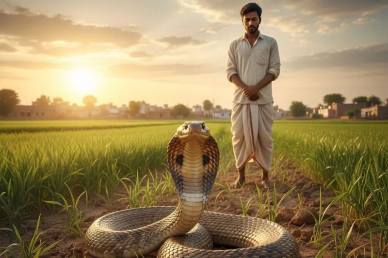 घटना 4 नवंबर को टड़ियावां थाना क्षेत्र के भड़ायल गांव के मजरा पुष्पताली में हुई। स्थानीय निवासी पुनीत वर्मा अपने धान के खेत में काम कर रहे थे, तभी अचानक 3-4 फीट लंबा काला किंग कोबरा उनके पैर से लिपट गया और डस लिया। सांप ने जैसे ही पुनीत को डसा उसे बहुत गुस्सा आ गया और उसने सांप को पकड़कर उसका फन अपने दांतों से चबा डाला। सांप तड़प-तड़प कर मर गया।