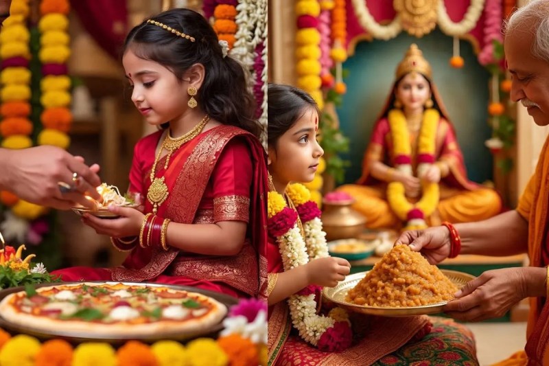 कन्या पूजन में परोसा पिज्जा-पास्ता, हलवा-चना ही सच्चा सम्मान, फोटो मेटा एआइ