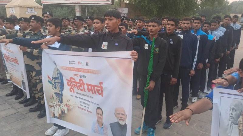 लोहपुरुष सरदार वल्लभभाई पटेल की 150वीं जयंती पर शुक्रवार को जैसलमेर में राष्ट्रीय एकता दिवस के अवसर पर अखिल भारतीय जिला स्तरीय पदयात्रा का भव्य आयोजन हुआ। कार्यक्रम की शुरुआत गड़ीसर चौराहे से हुई, जहां जिला कलक्टर प्रताप सिंह और पुलिस अधीक्षक अभिषेक शिवहरे ने हरी झंडी दिखाकर पदयात्रा को रवाना किया।इस अवसर पर कलक्टर ने उपस्थित जनसमूह को राष्ट्रीय एकता और आत्मनिर्भर भारत की शपथ दिलाई।