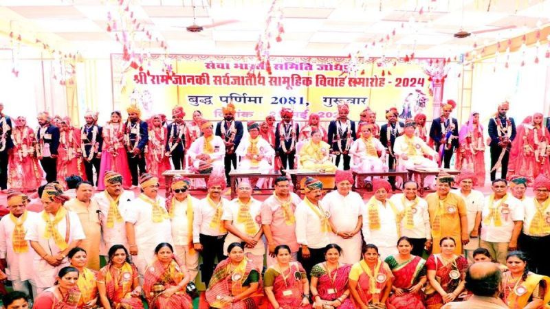 जोधपुर. सेवा भारती समिति जोधपुर की ओर श्रीराम जानकी सर्वजातीय सामूहिक विवाह समारोह 2024 बुद्ध पूर्णिमा गुरुवार को आदर्श विद्या मंदिर केशव परिसर, कमला नेहरू नगर में आयोजित हुआ। समारोह में 21 जोड़ों ने वैदिक मंत्रोच्चार के साथ परिणय सूत्र में बंधकर सात जन्मों तक साथ रहने का वचन लिया। सभी बारातें सुबह 8.30 बजे जूना खेड़ापति हनुमानजी मंदिर से रवाना होकर आखलिया चौराह होते हुए विवाह स्थल केशव परिसर में पहुंची। रास्ते में, जगह-जगह बारातों का स्वागत किया गया। तोरण के बाद वरमाला कार्यक्रम हुआ। पाणिग्रहण से पहले गणेश पूजन व फेरे हुए। नवविवाहित जोड़ों को भगवान राम लला की प्रतिमाएं भेंट की गई। पं. राजेश दवे ने सभी जोड़ों को नशामुक्त, बेटी बचाओ, भ्रूण हत्या नहीं करने, बालिका शिक्षा, बेटी बचाओ, समाजसेवा की शपथ दिलाई।