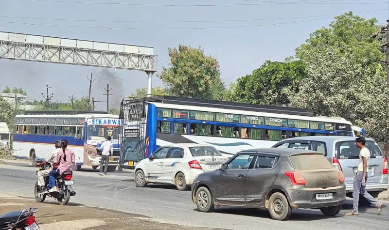 नेशनल हाईवे 44 पर ग्वालियर रूट की बस जहां से मुड़ती हैं, वहां दोनों तरफ चंबल रेत से भरी ट्रैक्टर- ट्रॉलियां बड़ी संख्या में सडक़ किनारे दोनो तरफ खड़ी रहती हैं। खासकर सुबह 11.30 बजे तक स्थिति ज्यादा खराब है। रेत से भरी ट्रॉलियों के सडक़ पर खड़े होने से पर्याप्त स्पेस के अभाव में बस एक बार में मुड़ नहीं पाती। बस को पीछे करने में समय लगता है तब दोनों तरफ को ट्रैफिक जाम हो जाता है, जब तक एक बस मुड़ती तब तक दूसरी आ जाती है। इसलिए दोपहर तक तो जबरदस्त जाम के हालात रहते हैं, उसके बाद लगता और खुलता रहता है। शाम के समय ट्रैफिक का लोढ बढऩे पर फिर जाम की स्थिति निर्मित हो जाती है।