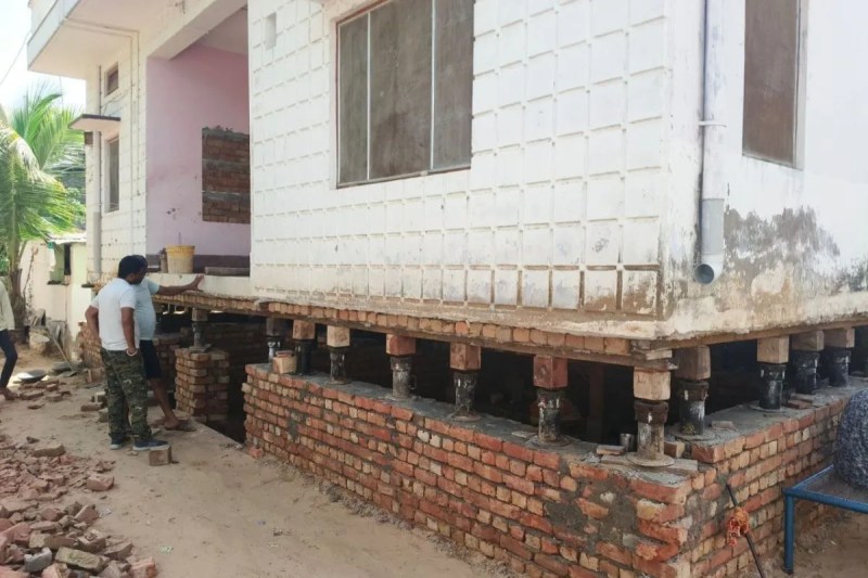 नागौर। मौलासर कस्बे के गंवाई कुएं से सटे एक रहवासी भवन को आधुनिक तकनीक का उपयोग करते हुए करीब पांच फीट ऊपर नई नींव पर उठाया गया। जैक और ट्रेक प्रणाली के माध्यम से इस भवन को ऊंचा करने का इलाके में यह पहला मामला बताया जा रहा है। कस्बे में यह भवन पांच फीट तक ऊंचा उठते देख स्थानीय लोग भी हैरान हैं और प्रतिदिन यहां कार्य को देखने लोगों की भीड़ जुटती है।