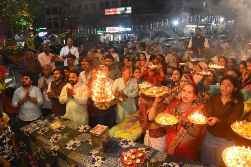 तीनबत्ती पर एकता काली कमेटी ने महाआरती का आयोजन किया। बड़ी संख्या में भक्तों ने यहां माता की महाआरती की। छत्रसाल गणपति व्यायाम शाला के राम दल ने यहां अखाड़े का प्रदर्शन किया। इसमें बेटियां भी शामिल थी।