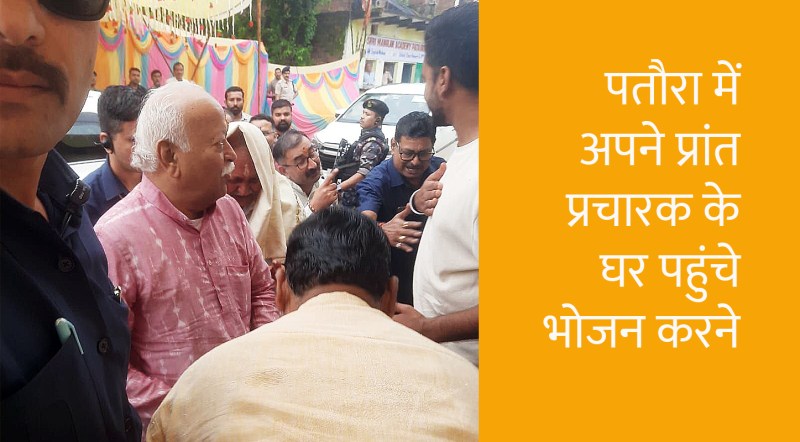 मां शारदा के दर्शन के बाद भागवत कार द्वारा सतना जिले की उचेहरा तहसील स्थित पतौरा गांव पहुंचे। यहां संघ के प्रांत प्रचारक बृजकांत चतुर्वेदी का घर है। यहां उन्होंने चतुर्वेदी के घर पर बने स्थानीय व्यंजन बरा-मुगौरा और रसाज की कढ़ी का स्वाद लिया। उनके साथ परिवार के अन्य सदस्यों सहित साथ में चल रहे संघ कार्यकर्ता और प्रांच प्रचारक ने भी भोजन किया। इस दौरान गांव की पूरी गली को सील कर दिया गया था। किसी को आने जाने की अनुमति नहीं थी।