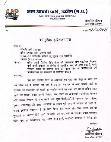 MP News: देशभर की प्रमुख राजनीतिक पार्टियों में शामिल 'आम आदमी पार्टी' को मध्यप्रदेश में बड़ा झटका लगा है। प्रदेश में आम आदमी पार्टी के कार्यकर्ताओं ने अपने ही दल के पदाधिकारी पर गंभीर आरोप लगाते हुए सामूहिक त्यागपत्र दे दिया है। मामला उज्जैन जिले का है, जहां बड़ी संख्या में आम आदमी पार्टी कार्यकर्ताओं ने इस्तीफा दे दिया है।